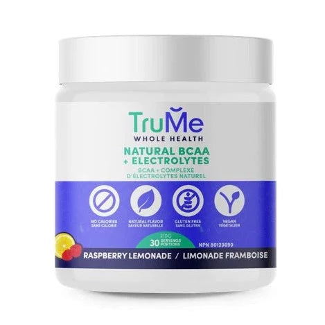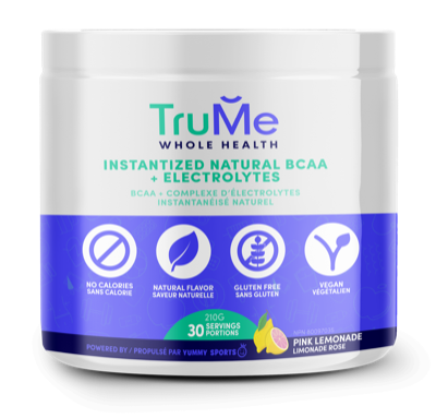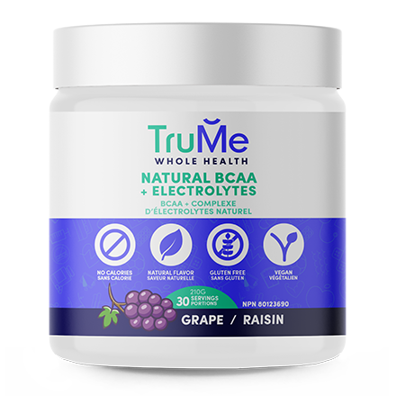 210 g (30 servings) TruMe Whole Health Branched-Chain Amino Acids come in three awesome, light, and refreshing flavours. Gluten Free No Calories Vegan Natural Flavor Optimal 2:1:1...