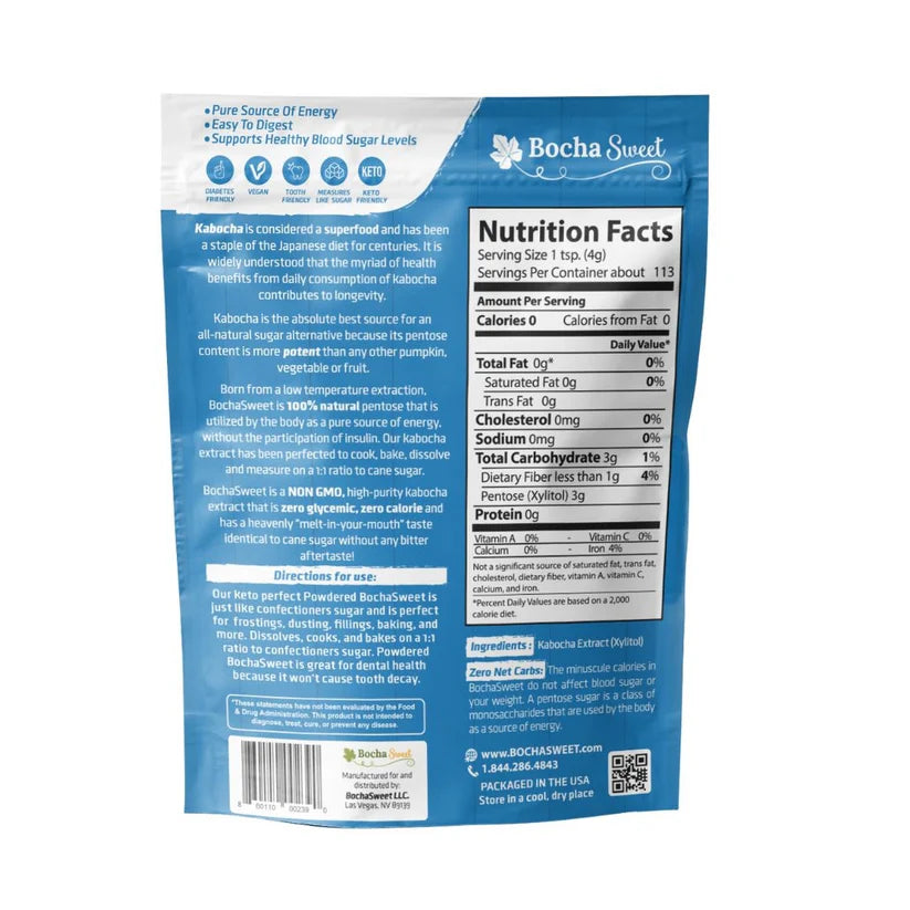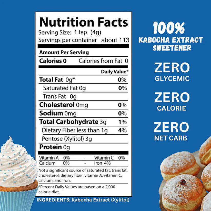While Xylitol is extracted from inflammatory & inexpensive sources like corn or birch wood, Bocha Sweet is naturally extracted from the Japanese pumpkin called Kabocha.