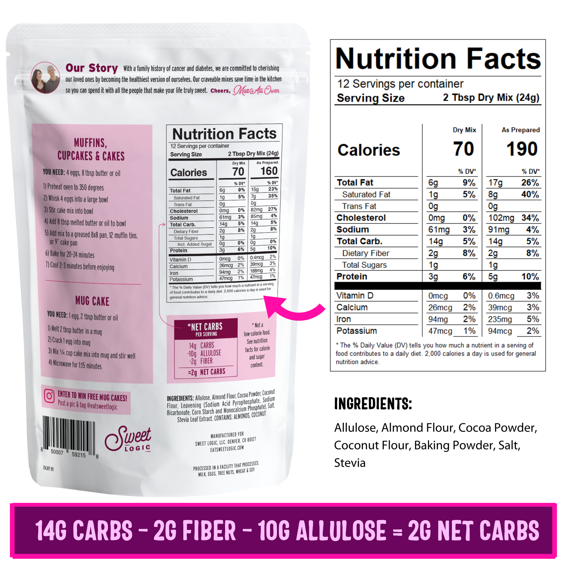 Sweet Logic Keto Chocolate Cake Mixes are an indulgent diet friendly treat made with all natural ingredients.