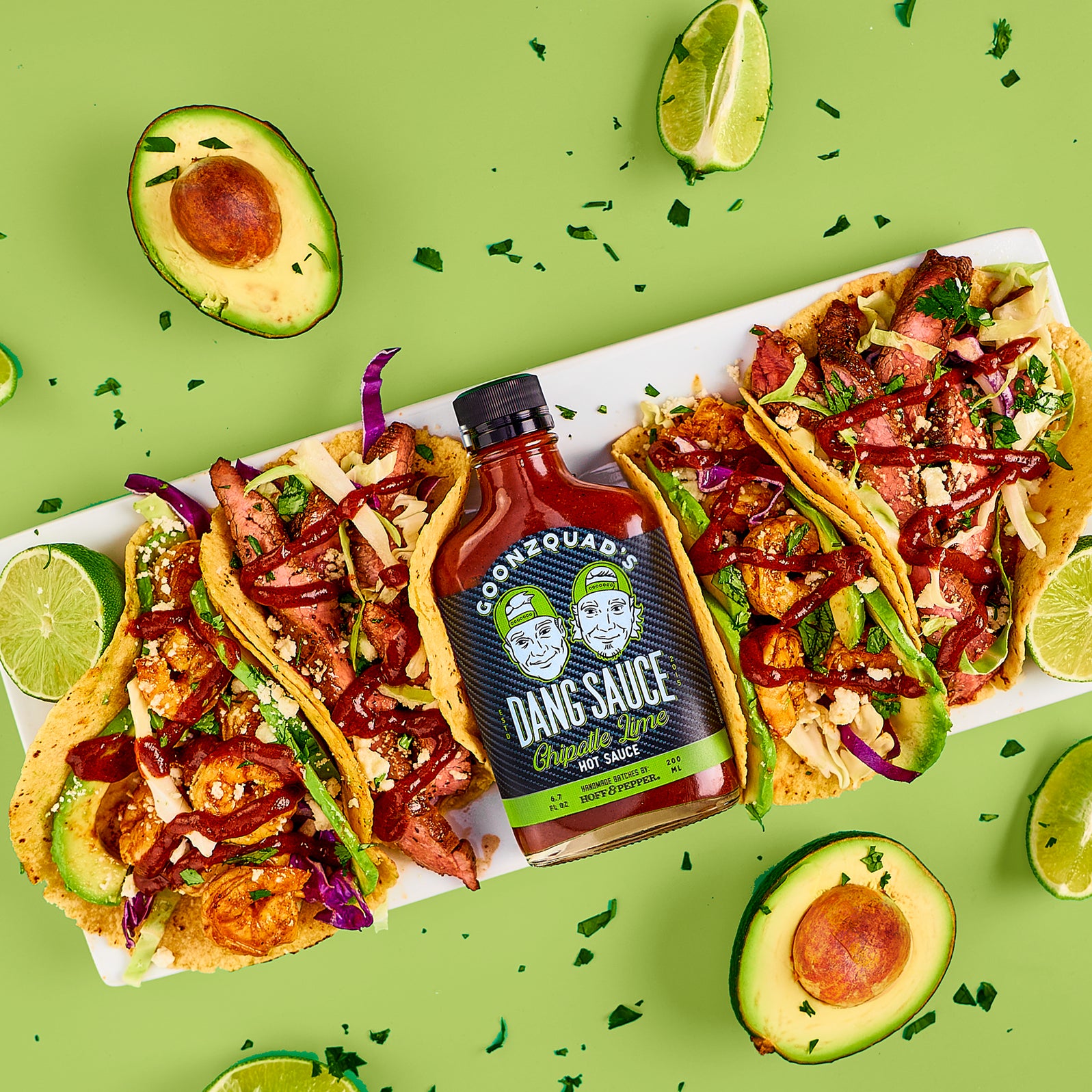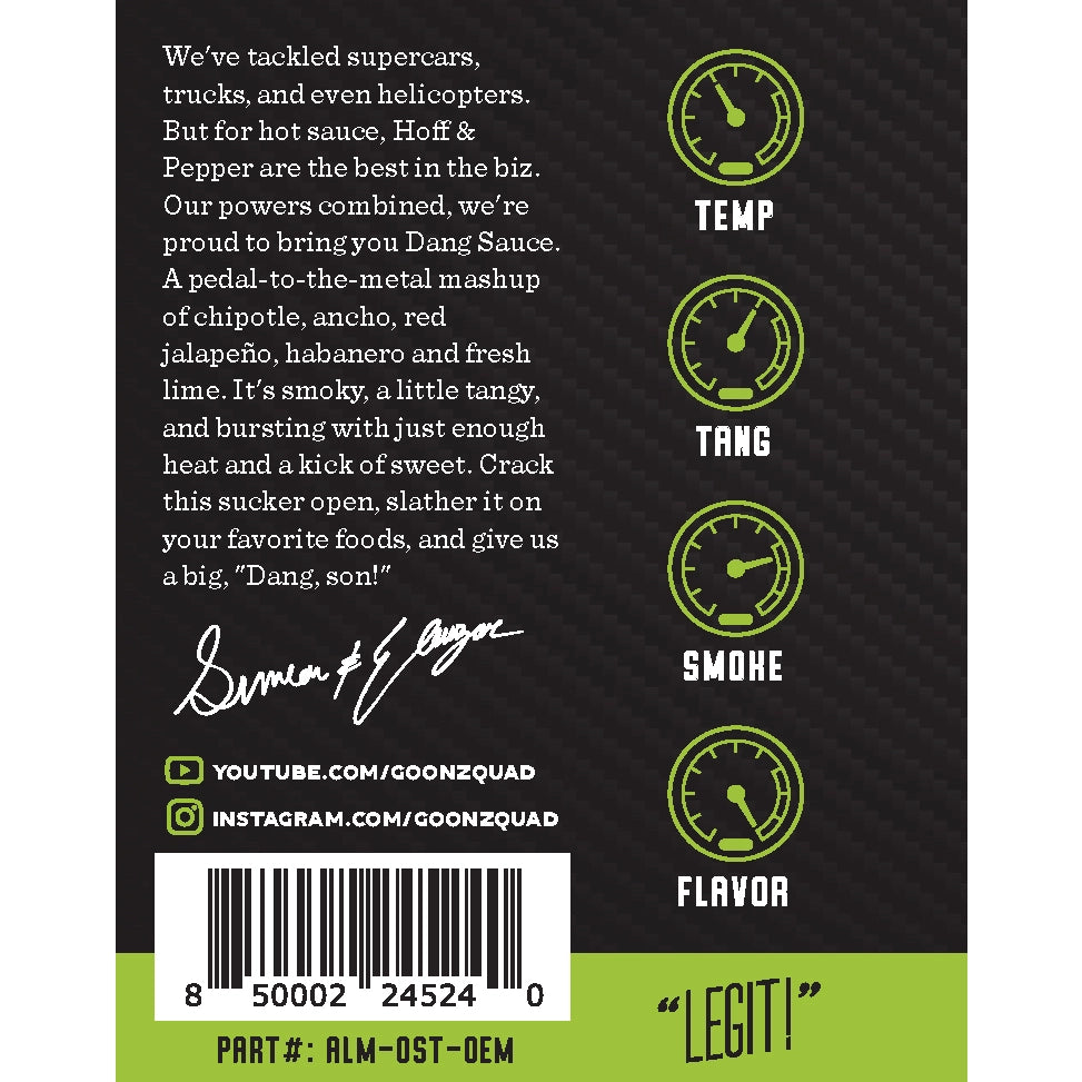 Made with the finest ingredients and farm-fresh Tennessee chiles, Dang Sauce is smoky, tangy, and just a little sweet. Ancho and chipotle peppers give the hot sauce a woodsmoke backbone, fresh lime juices brightens things up, and just a little bit of cane sugar rounds the whole thing out. The result is just enough heat to keep you on your toes and a palate-pleasing flavour that will keep you coming back for more.