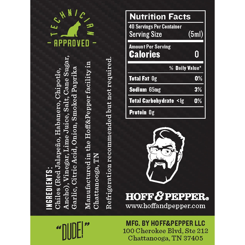 INGREDIENTS Red Jalapeño, Habanero, Chipotle, Ancho, Vinegar, Lime Juice, Salt, Cane Sugar, Garlic, Citric Acid, Onion, and Smoked Paprika