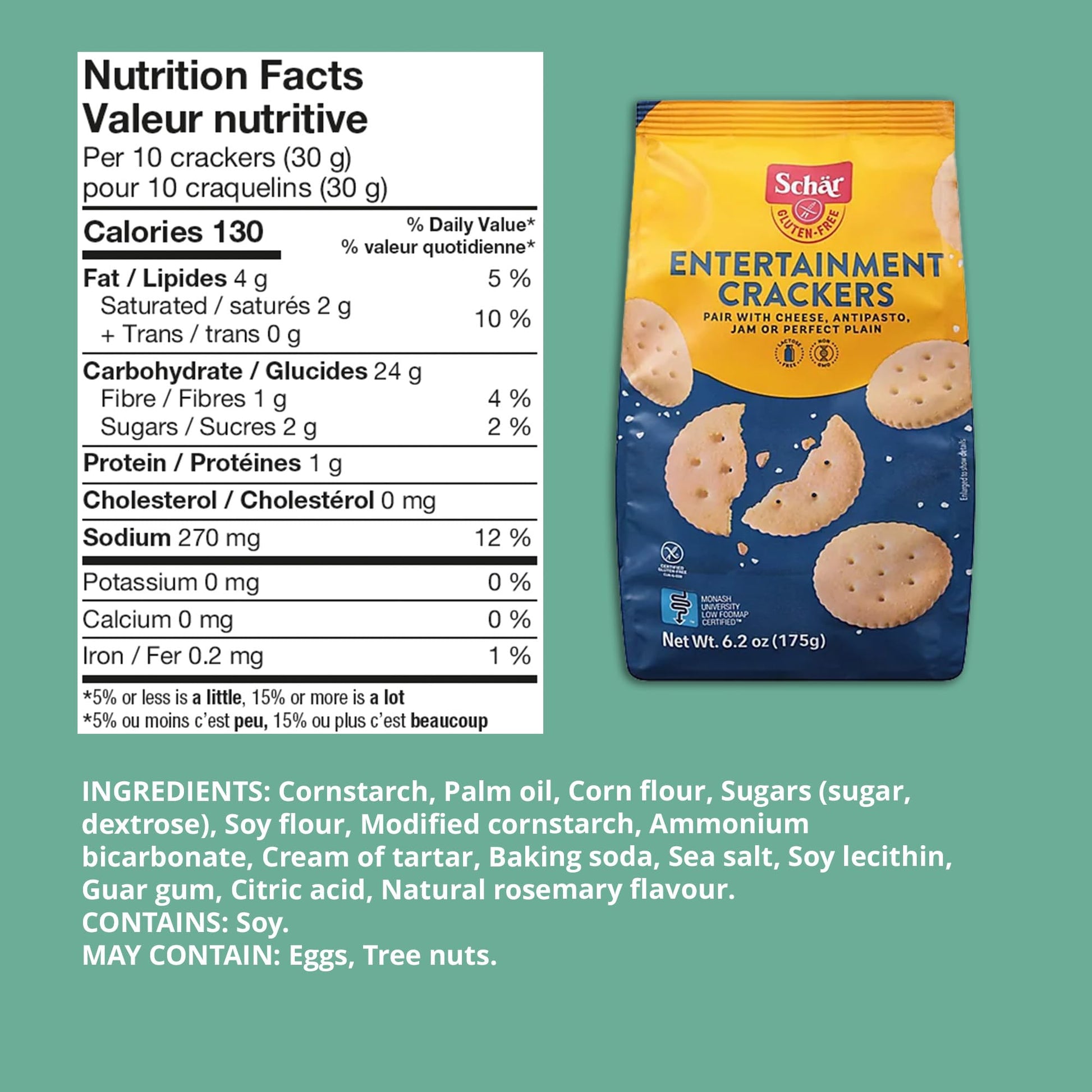 Make appetizer hour the star of your next dinner party with Schär Gluten Free Entertainment Crackers. Assemble a crowd-pleasing charcuterie board complete with these gourmet gluten-free vessels for your favourite meats and cheeses. They’re ideal with dips or perfect plain. We leave out the lactose, wheat, GMOs and preservatives so all of your guests can snack away with confidence.