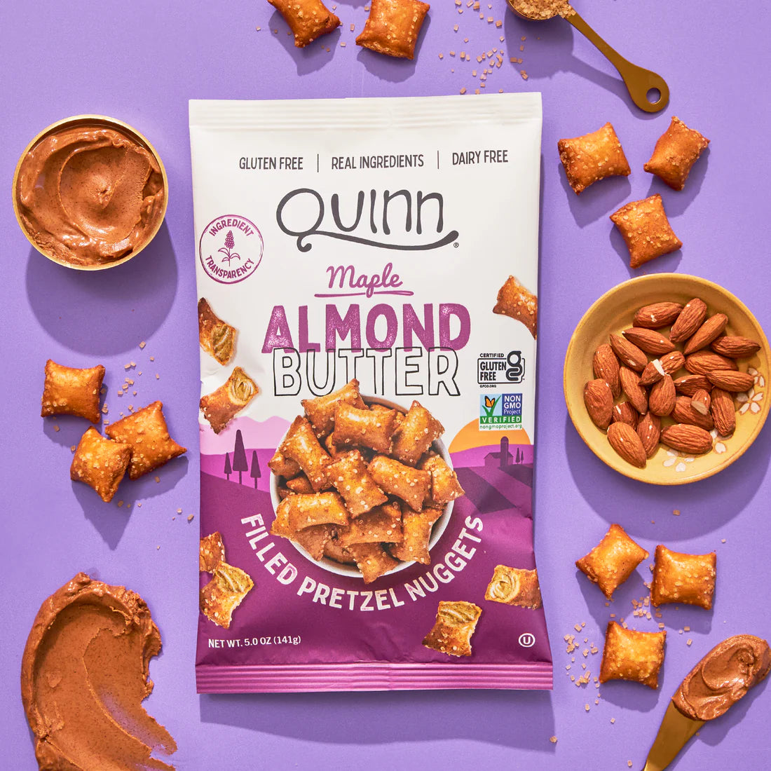 Maple Almond Butter: You asked, we (finally) answered! Your favourite gluten free pretzel nuggets now filled with delicious and perfectly sweet maple almond butter.