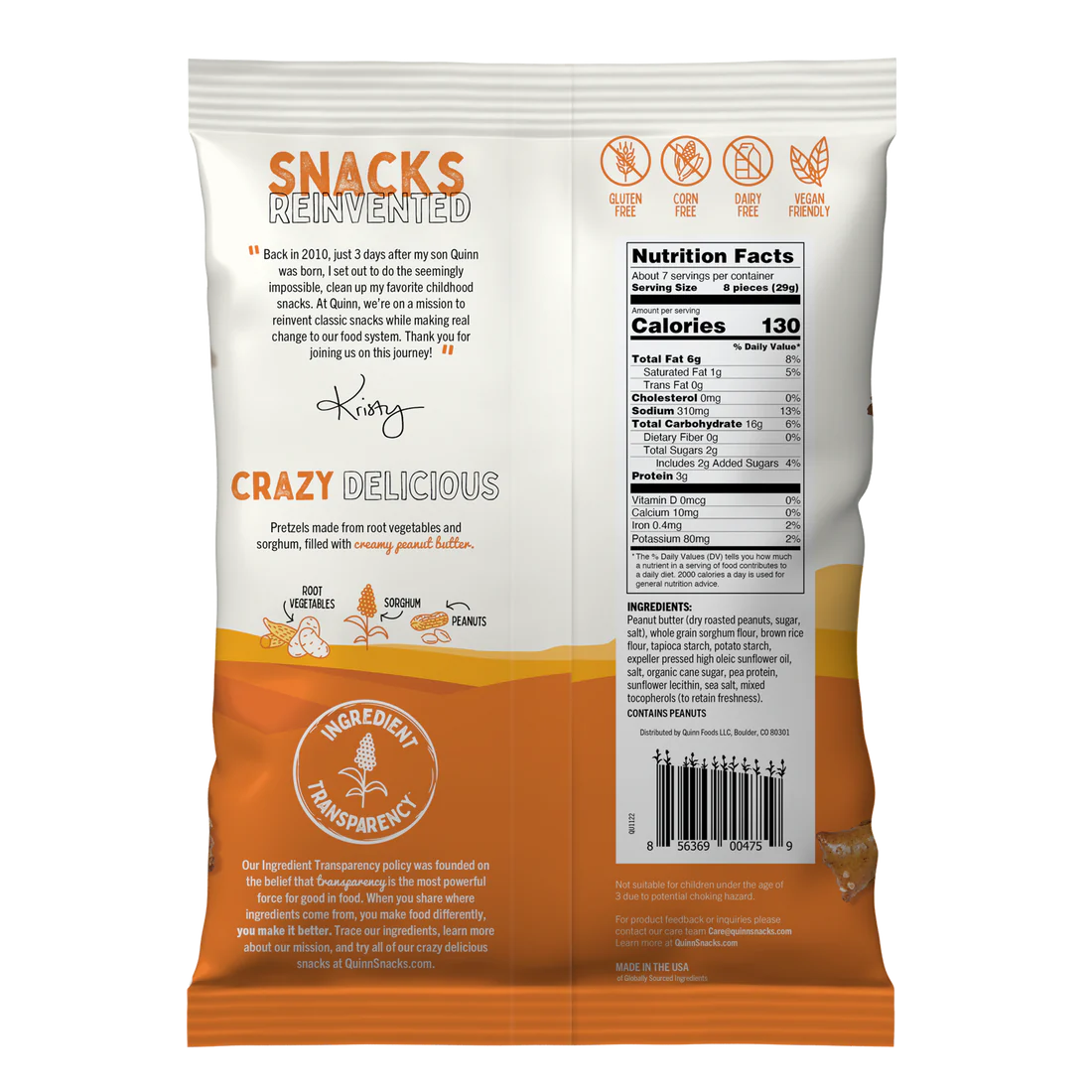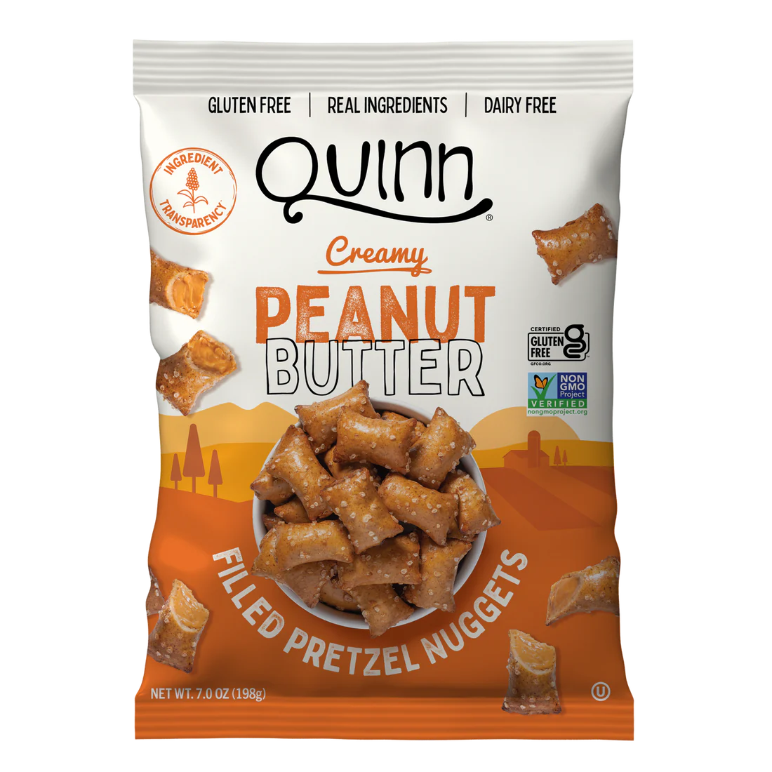 Creamy Peanut Butter: Introducing the FIRST gluten free, peanut butter filled pretzel. Ever. The perfect ratio of creamy, slightly sweet peanut butter to salty delicious, crunchy pretzel. Once you try these there’s no holding back! Oh, and they're not only gluten free, but dairy free, corn free and vegan friendly.