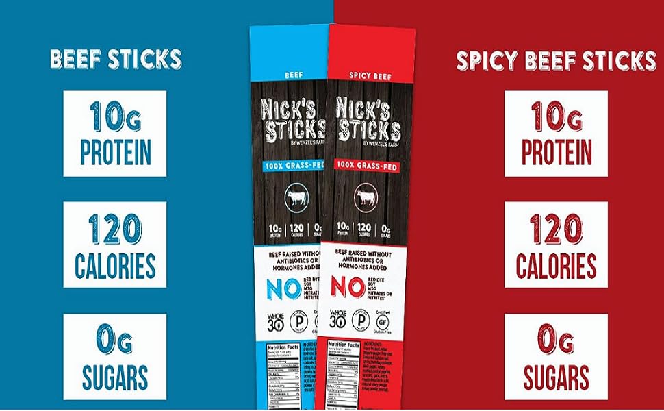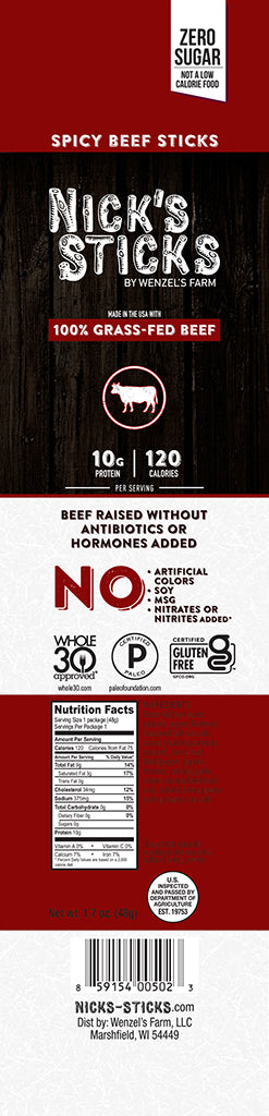 The grass-fed beef stick. Our pride and joy. Nick’s Sticks beef sticks are chock-full of sunshine and free-range living. You can positively taste the nutritiousness (or is that the deliciousness?) of our staple product. Your brain says order it for being a clean protein, dye-free, nitrate-free, hormone-free, sugar-free (not a low calorie food), antibiotic-free snack. Your tummy will keep you coming back for the pure pleasure of its beefy taste.