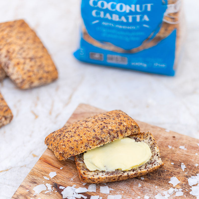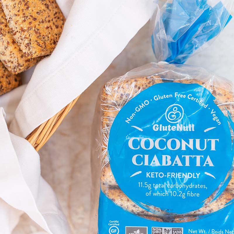 Glutenull Coconut Ciabatta is Keto and low in carbs. They’re tasty, fluffy, and exceptionally loved by our customers! With only 1.3g net carbs per 50g serving, our Coconut Ciabatta has been tested in a laboratory for its low carb content. We recommend toasting the ciabatta for open sandwiches or eating it fresh as it is.