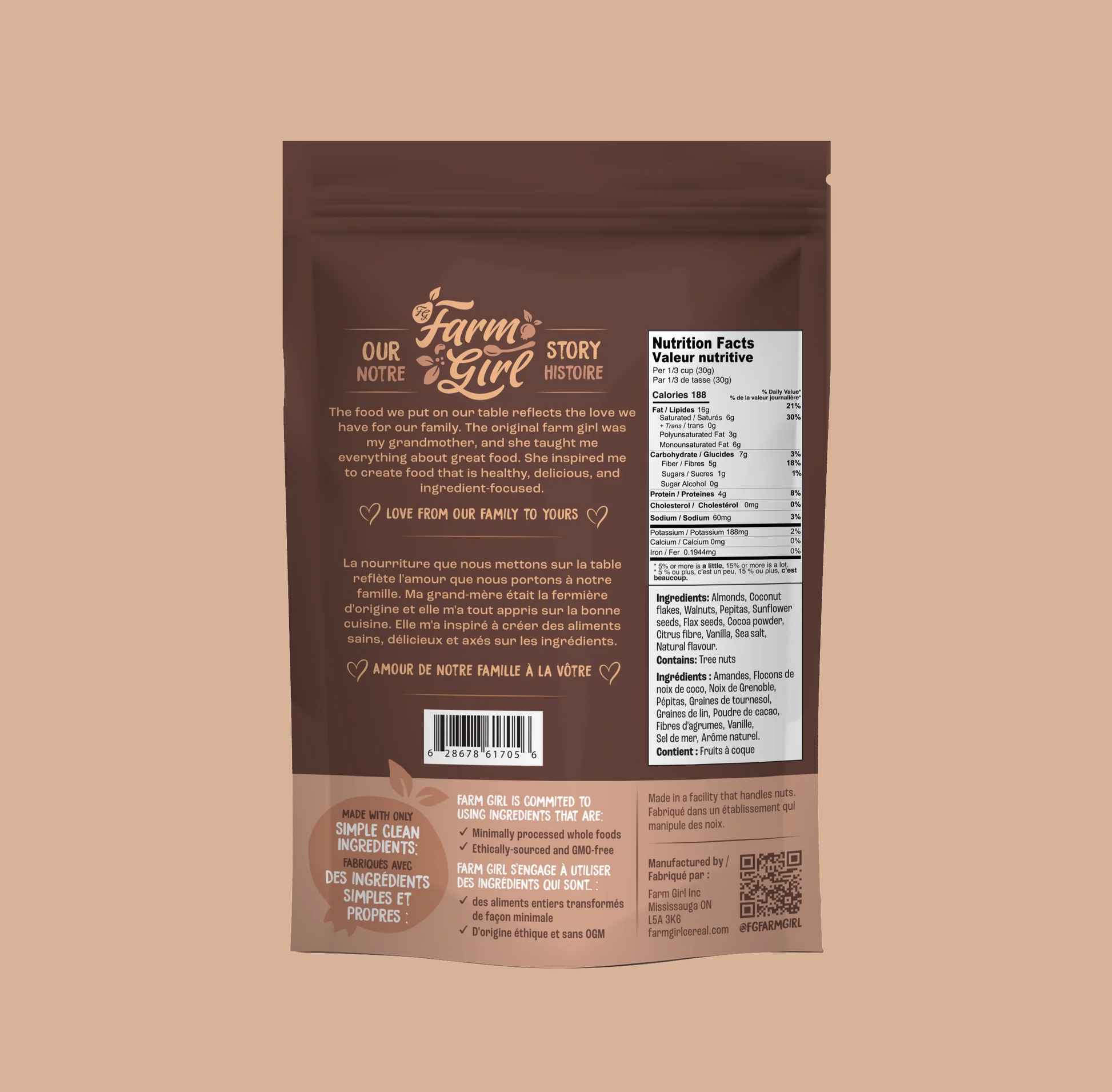 Have a bit of a sweet tooth but trying to stay healthy at breakfast? Farm Girl's Chocolate Granola is the answer! A grain-free blend of Coconut, Almonds, Walnuts, Sunflower Seeds and Pepitas, topped with Cocoa for that delicious chocolate kick, it's a delicious and satisfying way to start your day!