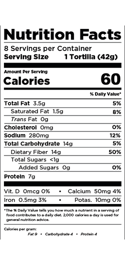 Cutting your carbs? This one is for you! Introducing our first-ever ZERO Net Carb Tortillas. Each tortilla contains just 60 calories as is made with NO hydrogenated oils and NO added sugar. Perfect if you're following a keto-friendly diet or want to reduce your carb intake while increasing your fiber.