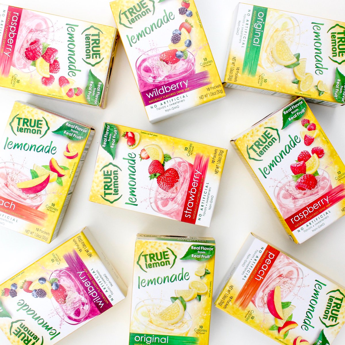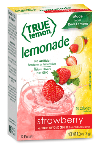 Enhance the flavor of your water and fight dehydration with True Lemon® Lemonade Drink Mixes, made with simple, non GMO ingredients in 5 delicious, crave-worthy flavors. These low sugar, low calorie lemonades use only real fruit juices and oils and are naturally sweetened with Stevia, so you get the refreshing taste you love without the guilt. Enjoy Original Lemonade, Strawberry Lemonade, Raspberry Lemonade, and Peach Lemonade anytime, anywhere!