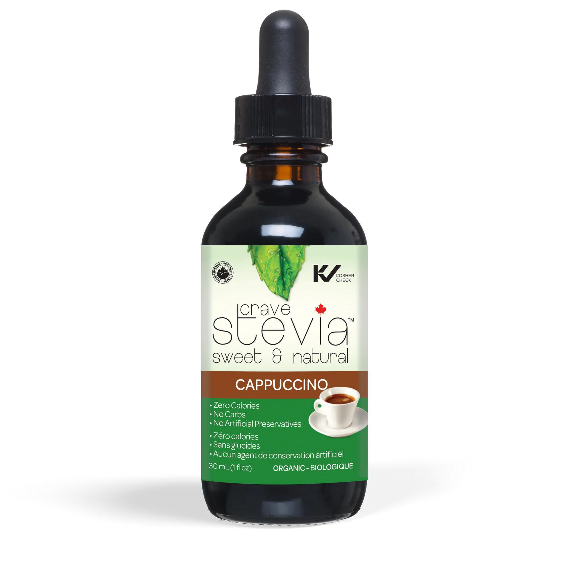 Crave Stevia Cappuccino Liquid recreates the scent and rich, creamy taste of espresso and frothy milk in a steaming Italian cappuccino. Just a couple of drops perks up any coffee beverage or dessert recipe