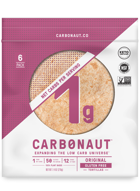 Out of this world wraps, burritos, and fajitas are ready to roll in soft, low net carb tortillas. Pile on the protein and spread your favorite fillings on a sturdy but stretchy base without fear—Carbonaut Gluten Free Tortillas are engineered to hold up to healthy appetites. All with only 1 gram of net carbs. So your tasty low carb cargo is containment breach safe from plate to port!