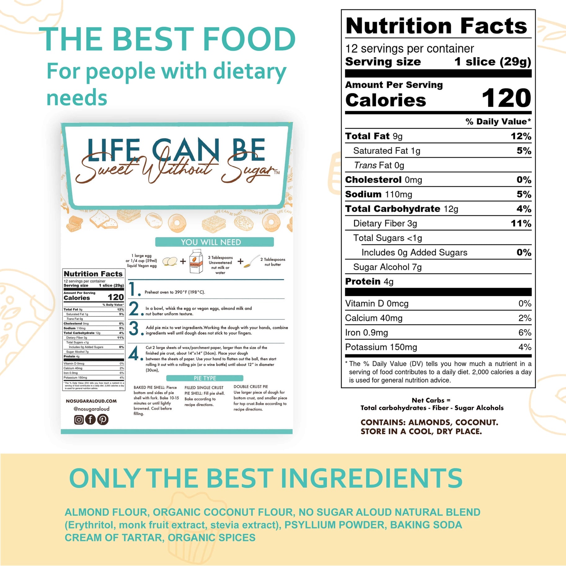 No Sugar Aloud pie crust mix is made with almond and coconut flour, the result is significantly lower in sugar and net carbs making it a low-carb and low-glycemic treat. Now you can enjoy a party in every bite again without all the sugar and carbs in regular pie. Enjoy a sweet life without sugar!"