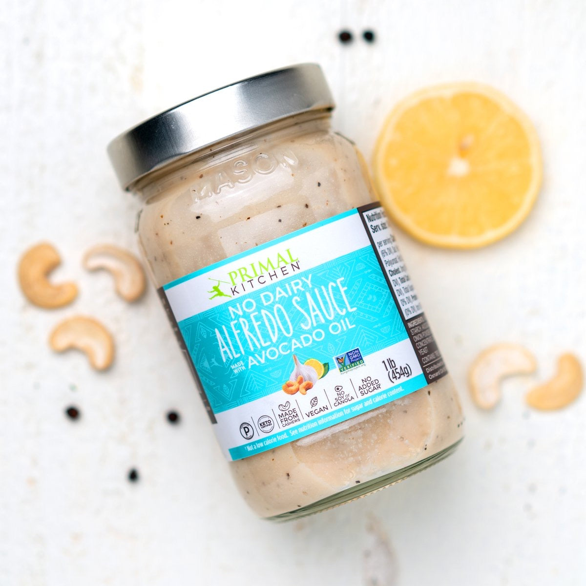 Say ciao to compromise! The new Primal Kitchen No-Dairy Alfredo Sauce delivers that same decadent Alfredo sauce taste without dairy (or gluten, soy, canola oil or artificial ingredients). Creamy cashew butter, avocado oil, flavourful roasted garlic, onion powder, and a sprinkle of black pepper make this Paleo- and Keto-certified, plant-based sauce a perfect pairing with zoodles, parmesan chicken, and classic fettuccine.