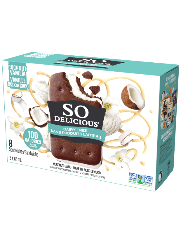 Ingredients: Non-dairy frozen dessert: Coconut base (filtered water, coconut cream), Sugars (cane sugar, tapioca syrup), Coconut oil, Pea protein, Locust bean gum, Guar gum, Natural flavour