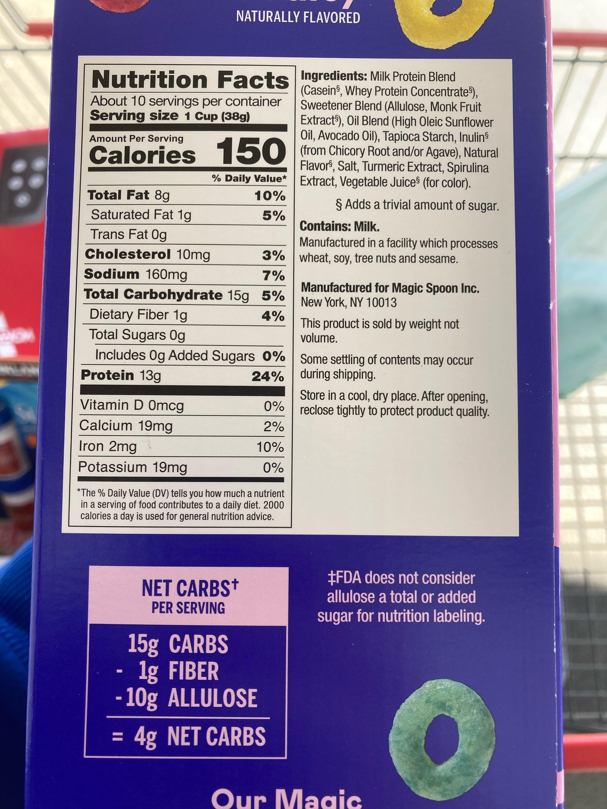 A fruity cereal that isn’t loopy. We’ve reimagined your favorite fruit-forward childhood cereal with 4g net carbs, 13g complete protein, 150 calories, and no artificial ingredients.