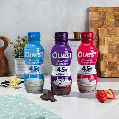 - HACK YOUR SHAKE. Quest Chocolate Flavored Protein Milkshakes deliver the chocolate flavor you love with 45g of high bioavailability protein per serving so you can experience the rich satisfaction of a milkshake - without saying “no” to protein.*