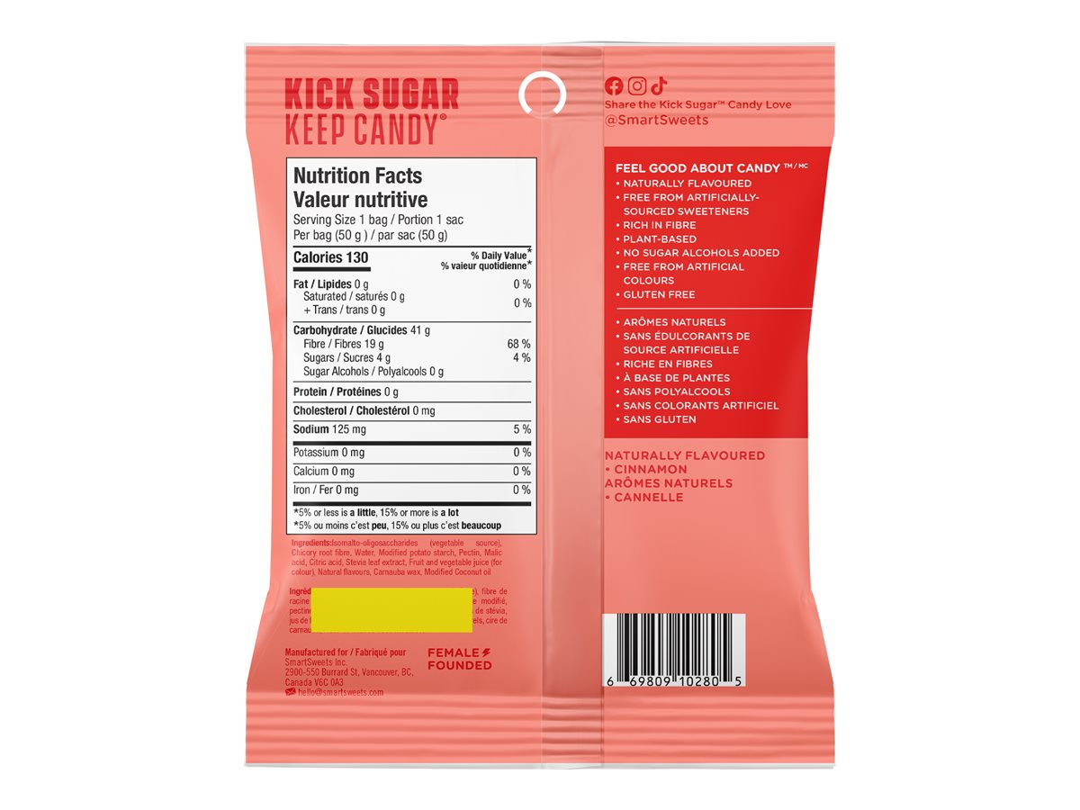 - 90% less sugar per 50g vs. leading traditional cinnamon candy