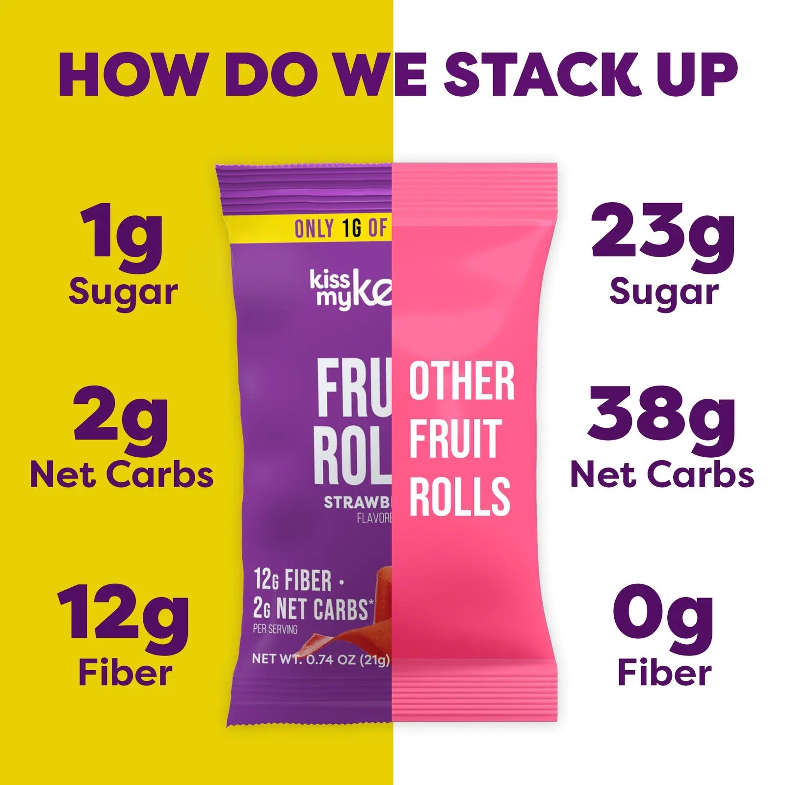 - High Fibre: 2g net carbs in every bag