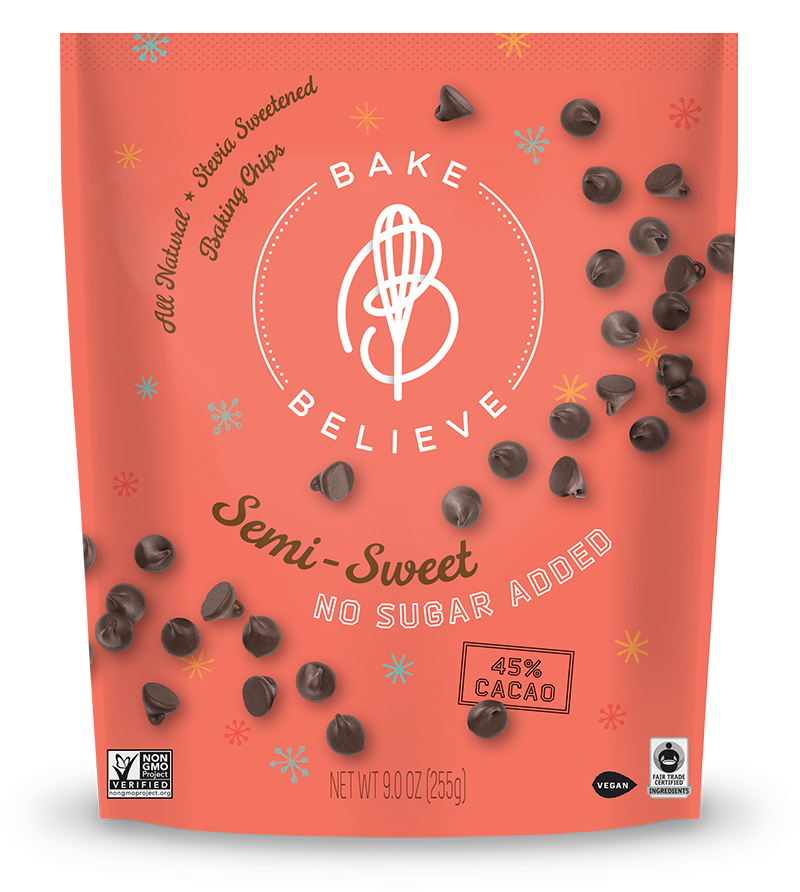 You asked and we delivered! Our Bake Believe Milk Baking Chips are rich, creamy, and will melt in your mouth. Sweetened with all natural, non-gmo stevia and made with Rainforest Alliance cocoa. Our Milk Baking Chips’ smooth delectable taste will elevate your favourite baked treat to perfection and make any snack break better.