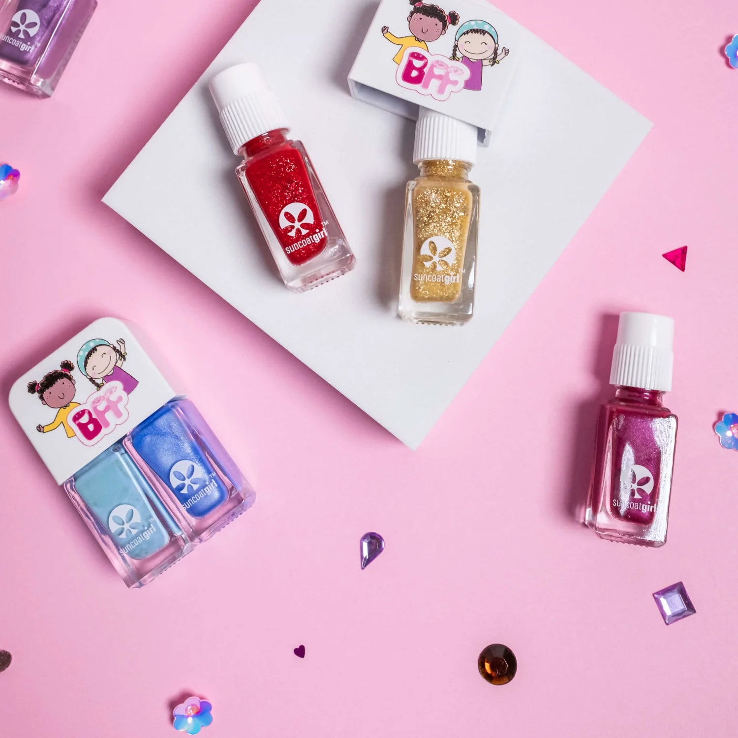 BFF Duo Sets: Our kids' nail polish sets are designed specifically for children to explore and enjoy nail art and decoration in a safe and age-appropriate manner.