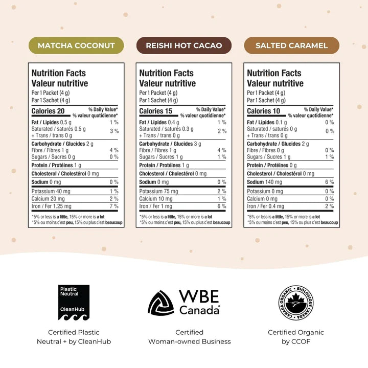 Take them on the go, gift them to your bestie, or try some of our best sellers without the commitment. Each blend is made with organic superfoods, low or no caffeine, and has 90% less sugar than your regular coffee shop faves. Leave the jitters behind and make your next 'coffee break' super with us.