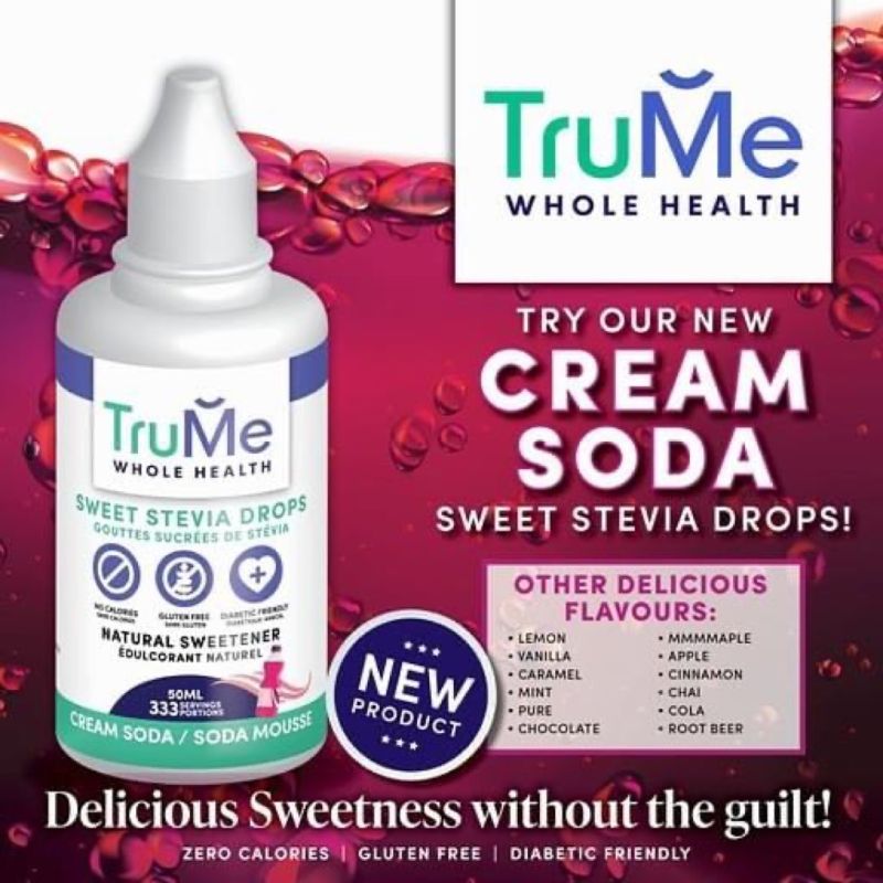 TruMe Sweet Stevia drops are a concentrated flavoured liquid, sweetened by organic Stevia. It is calorie-free, sugar-free and can be added to any food or drink you’d like to sweeten or flavour, with just a few drops.